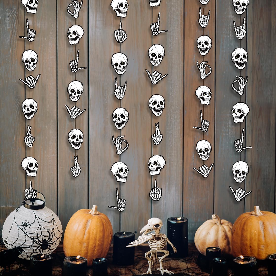- Spooky Party Decorations: Pairs well with gothic and emo party decor, halloween birthday party supplies, trick or treat banners, skull decorations, and spooky garlands for halloween. Whether it's for kids halloween parties or adult gothic events, this black and white skeleton hands garland is a must have halloween decoration.