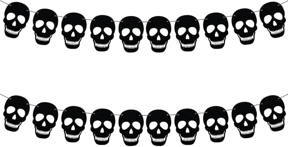 - PACKAGE INCLUDED: 20 PCS black felt skull banner, 2 perforated plastic needles, 2 black ropes.