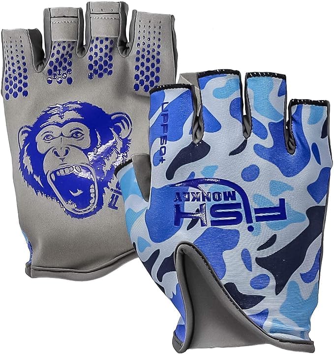 Fish Monkey FM18- Stubby Glove for Fishing L Old School Camo Blue