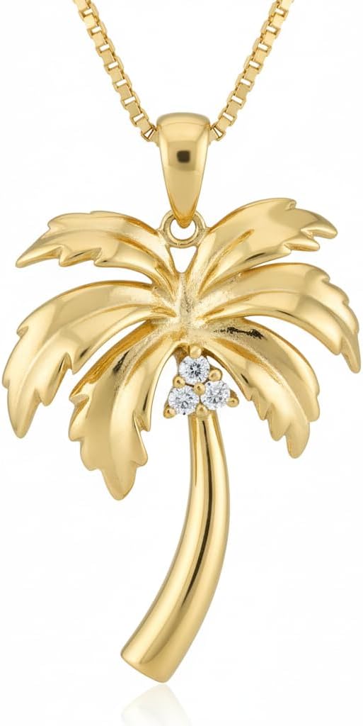 925 Sterling Silver Coconut Palm Tree Pendant with Cubic Zirconia Gemstone and 18" Box Chain, Nickel Free Hypoallergenic for Sensitive Skin, Hawaiian Jewelry for Women, Gift Box Included