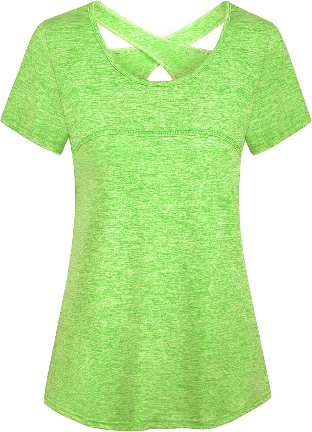 Kimmery Woman Short Sleeve Round Neck Criss Cross Back Yoga Shirt