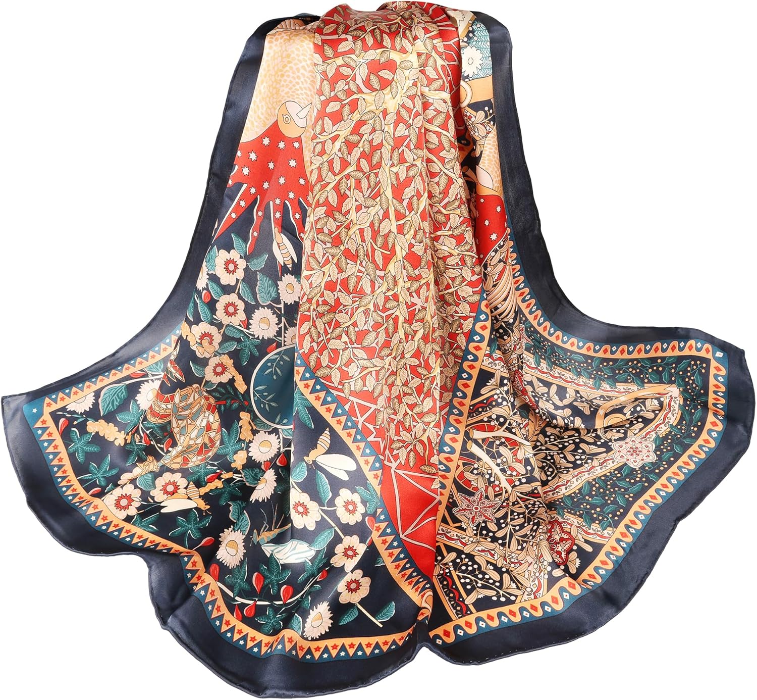 100% Pure Mulberry Silk Scarf 43”*43” Large Square Lightweight Headscarf Women’s Hair Wraps Shawls with Gift Packed