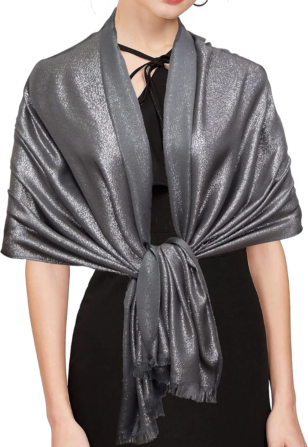 Gragengs Women's Sparkling Metallic Pashmina Shawls and Wraps Long Party Scarf Solid Color Two Tone