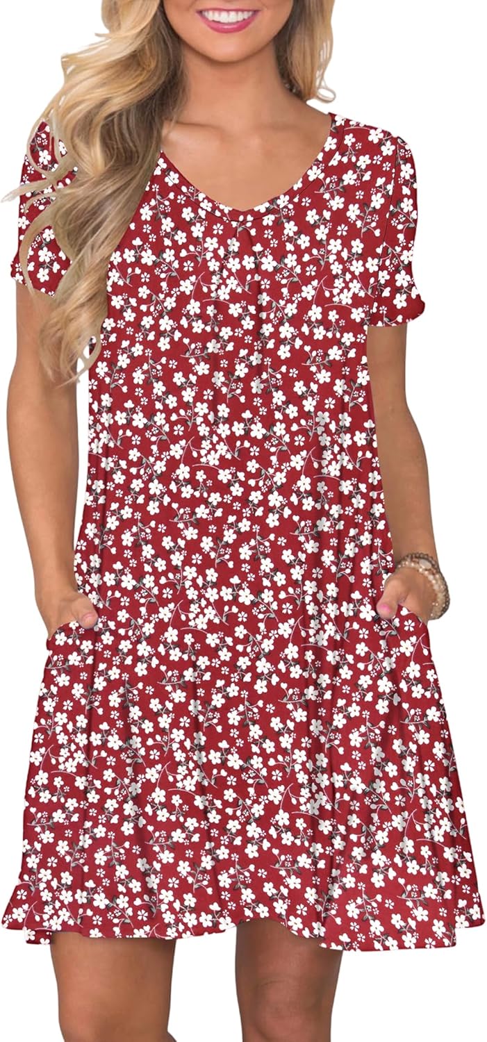 AUSELILY Women Summer Dress Casual Short Sleeve Sundress V Neck Floral Tiered Beach Dresses with Pockets