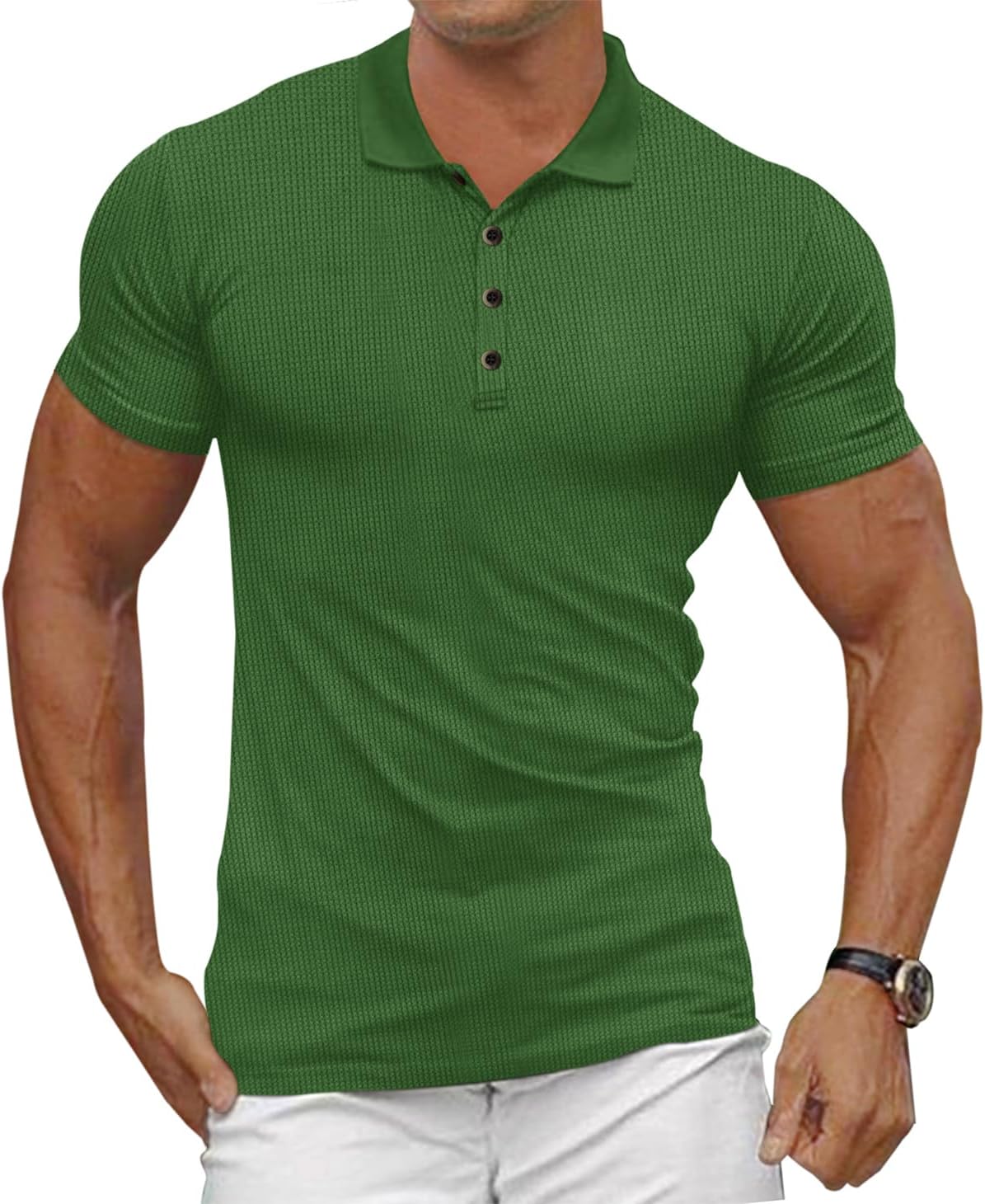 Men's Casual Polo Shirts Classic Button Basic Short Sleeve Waffle Solid Fit Golf Tees Stylish Tops
