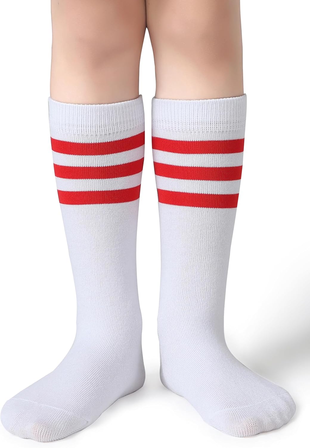 Pareberry Boys Girls Over the Calf Striped Tube Socks Cotton Soft Retro Athletics No Heel Socks for Kids 5-14 Years
