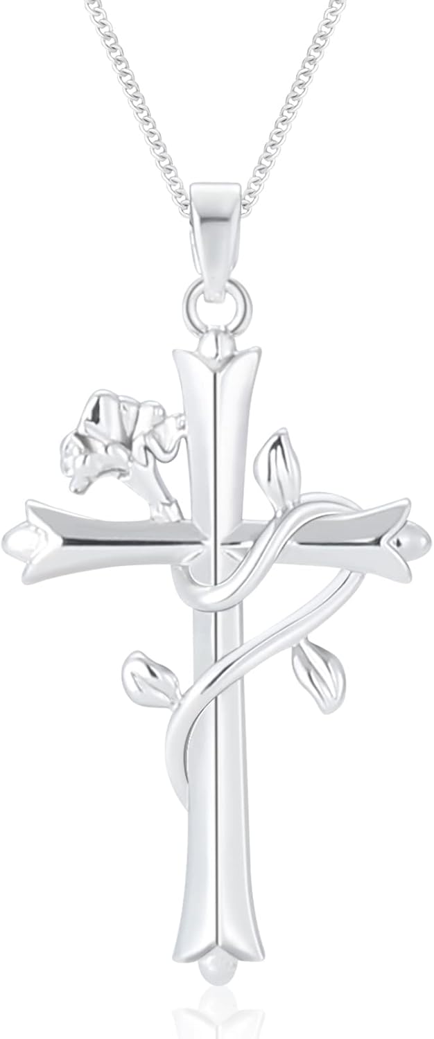 ACECHA Cross Necklace for Women | Silver Faith Birthstone Cross Pendant with Birth Flower Jewelry Gifts for Teen Wife Women for Birthday Anniversary
