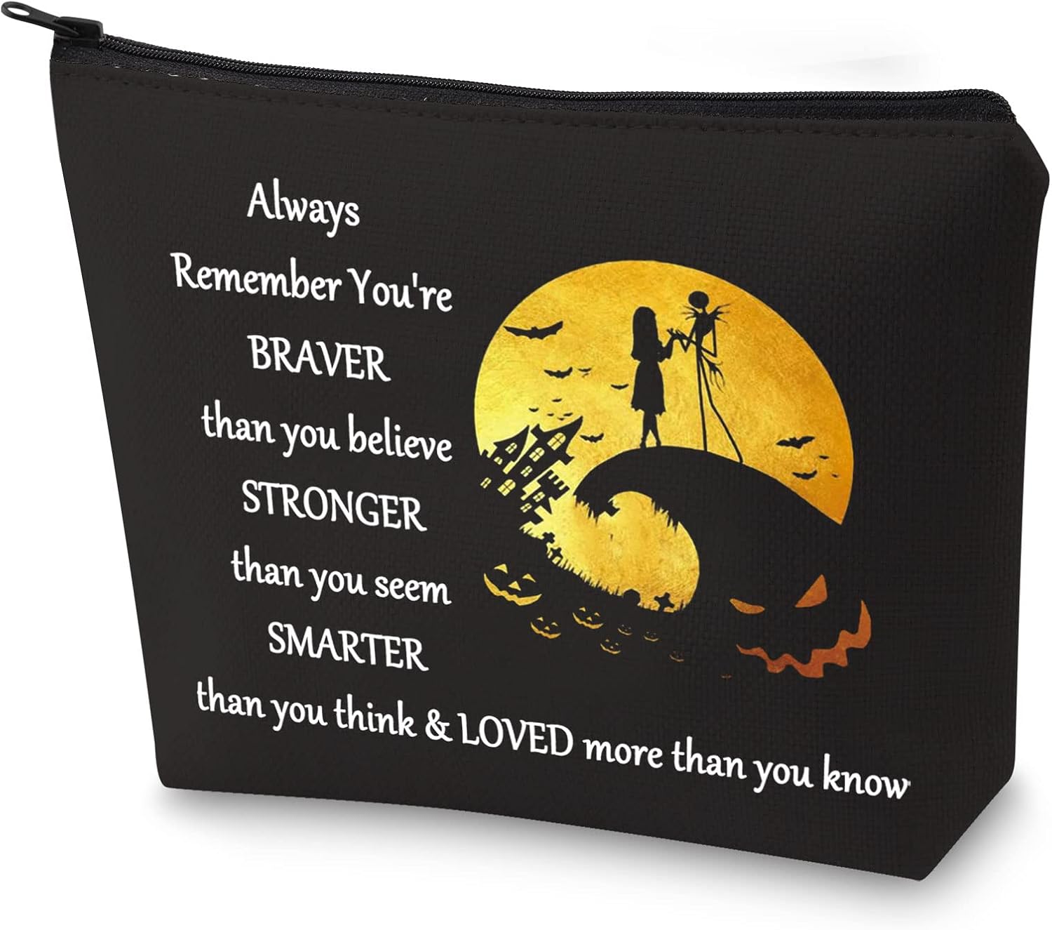 BWWKTOP Jack Fans Cosmetic Makeup Bag Horror Movie Fans Gifts You Are Braver Stronger Smarter Than You Think Halloween Zipper Pouch Bag (Always J & S bl)