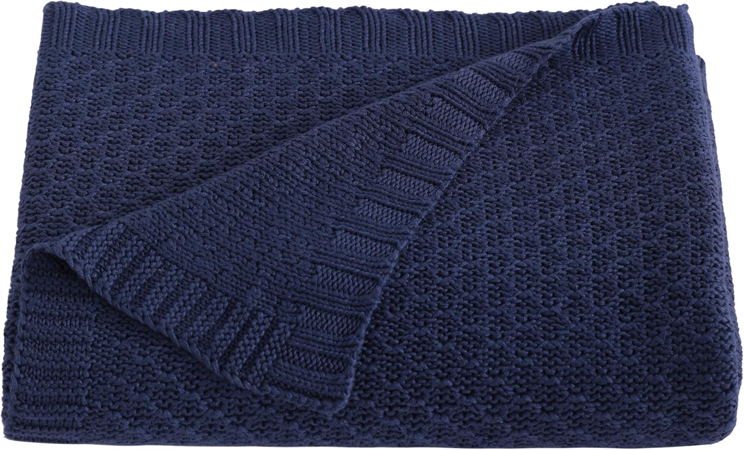 NTBAY Cable Knit Cooling Toddler Blanket, Soft and Breathable Baby Blanket 30x40 Inches Made from Rayon Derived from Bamboo for Crib, Stroller, Nursery, Navy Blue