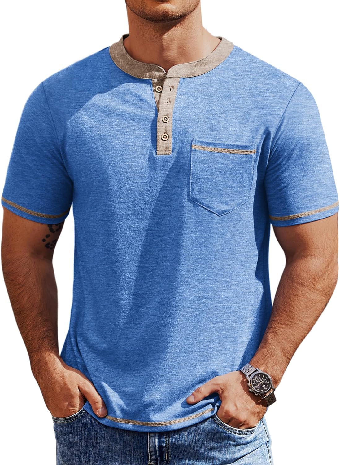 COOFANDY Mens Henley Shirts Short Sleeve Casual Button T-Shirts Basic Tee Shirts Summer Vintage T Shirts with Pocket
