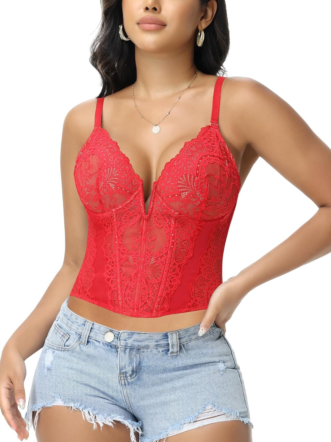 SHAPERIN Sexy Lace Bustier Corset Tops for Women Going Out Party Club Date Night Underwired Cami Crop Top