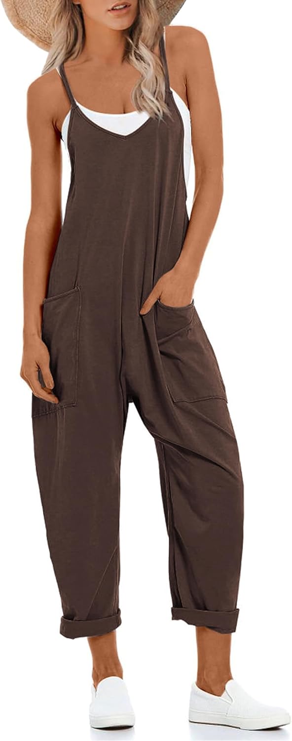 Lentta Women's Causal Jumpsuits V Neck Sleeveless Harem Overalls Stretchy Adjustable Strap Romper with Pockets