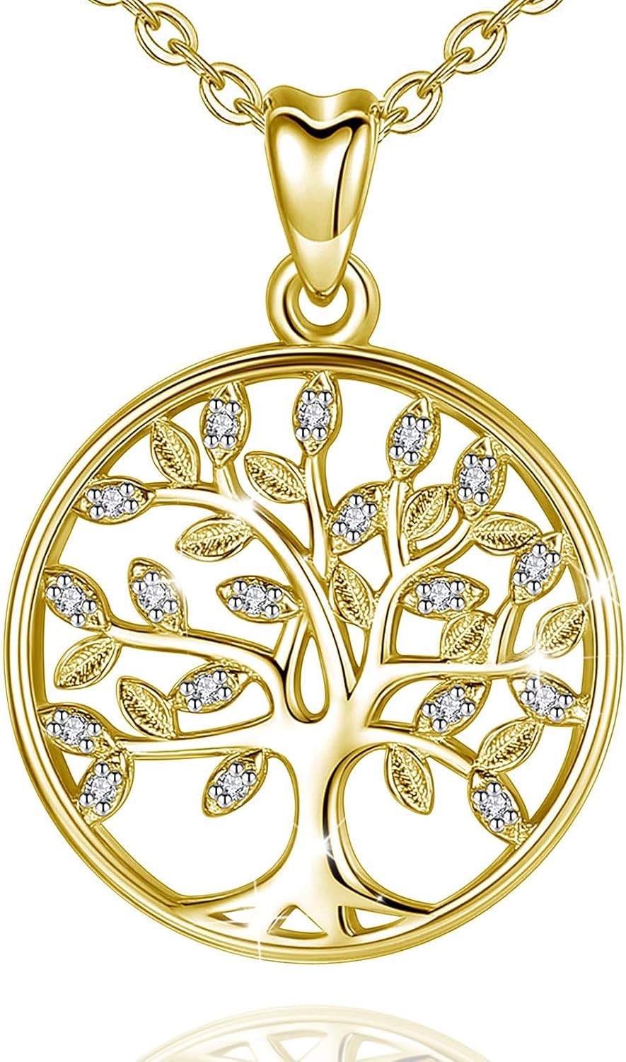 AEONSLOVE Tree of Life Necklace 925 Sterling Silver, Family Tree of Life Pendants Jewelry Gifts for Women Wife Mother, 18 Inch Chain