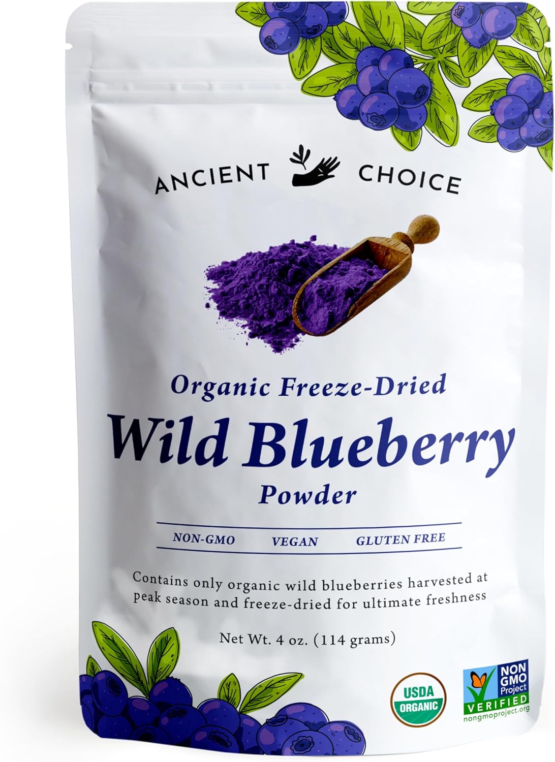 Ancient Choice - Wild Blueberry Powder (4 ounces) | USDA Organic | Freeze Dried | Non-GMO | Sourced From Pristine Countryside | Vegan Superfood | Vegetarian | Smoothie | Baking | Fiber | Prebiotic