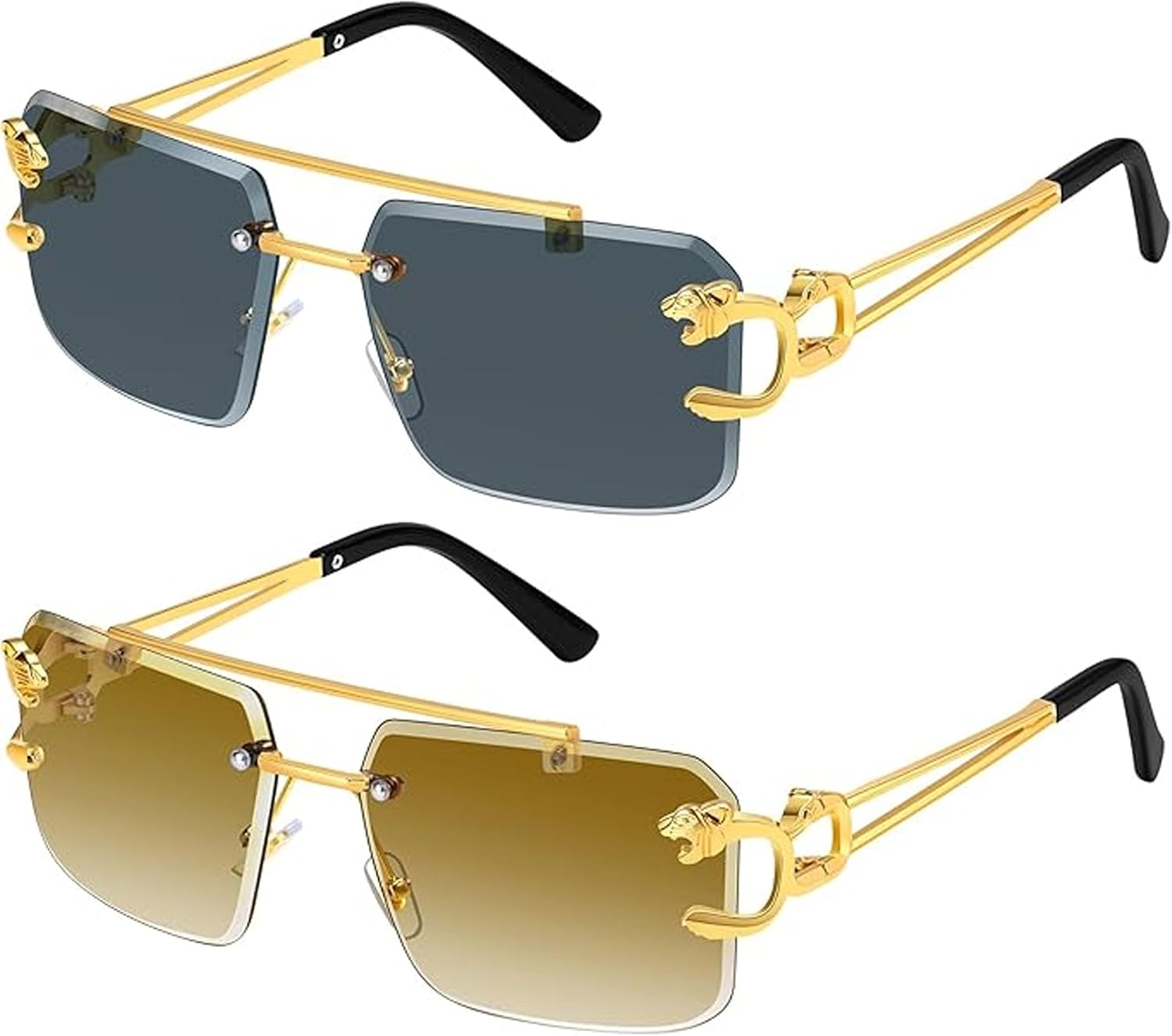 Dollger Rimless Sunglasses for Men Square Fashion Shades Tinted Lens Metal Frameless Rectangle Y2K Glasses UV400