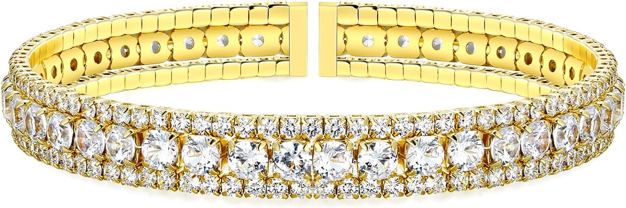 AiliFe Cuff Tennis Bracelet for Women: Crystal Adjustable Cubic Zirconia Silver Bangle - 14K Gold Plated Red Rhinestone Bracelets for Party Favors Bride Wedding Jewerly
