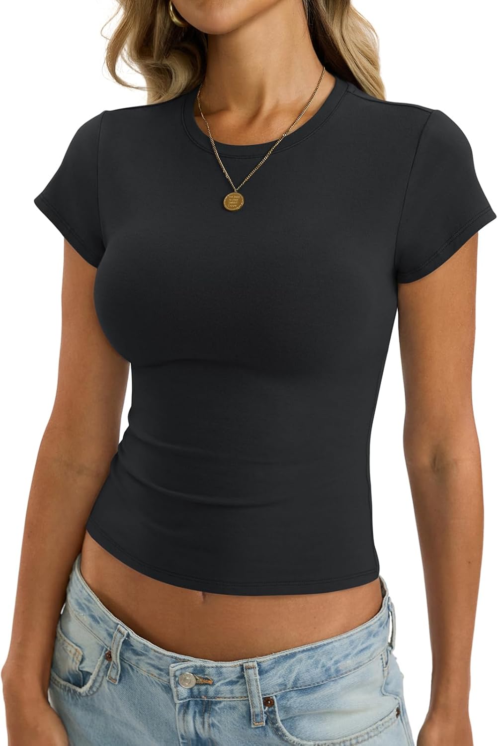 Womens Cotton Crop T Shirts Basic Crew Neck Tee Fitted Going Out Tops Summer Cute Gym Workout Clothes 2026