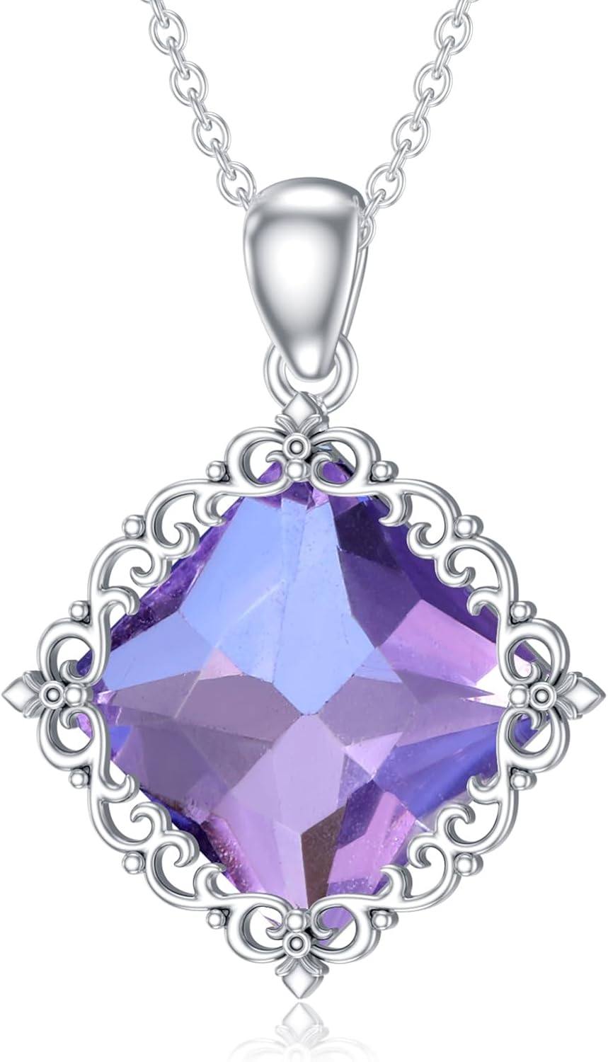 Natural Amethyst Necklace for Women 925 Sterling Silver Square Authentic Purple February Birthstone Gemstone Pendant for Christmas Birthday Valentine's Day