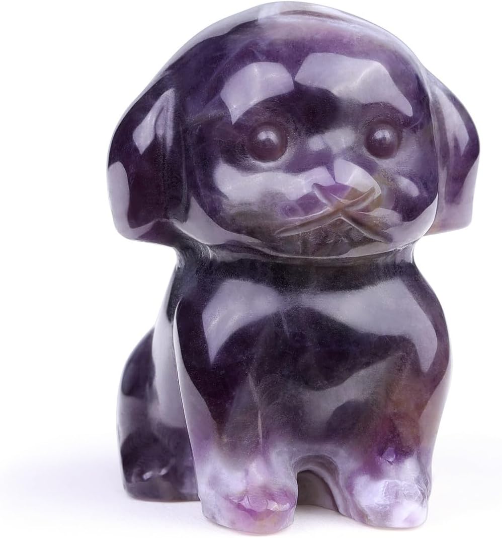 Jovivi Natural Amethyst Crystal Sitting Dog Statue Home Decor 1.6" Carved Gemstone Puppy Dog Figurines Pocket Sculpture Reiki Healing Stones Decorative Ornament Gift