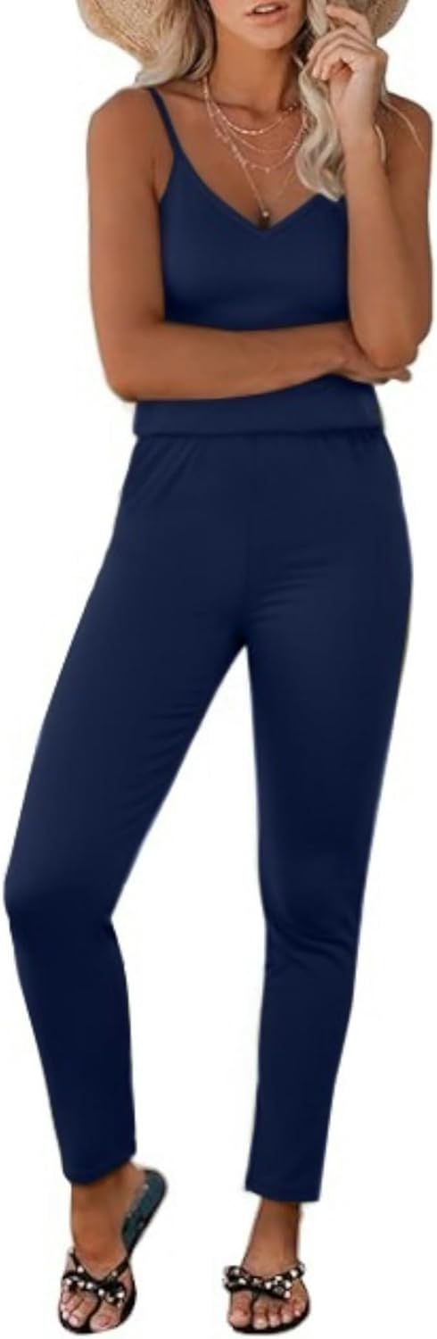 Women's Jumpsuits Dressy Spring One Piece Rompers Sexy Casual Summer Overalls Sleeveless Outfits Deep Ocean Blue L