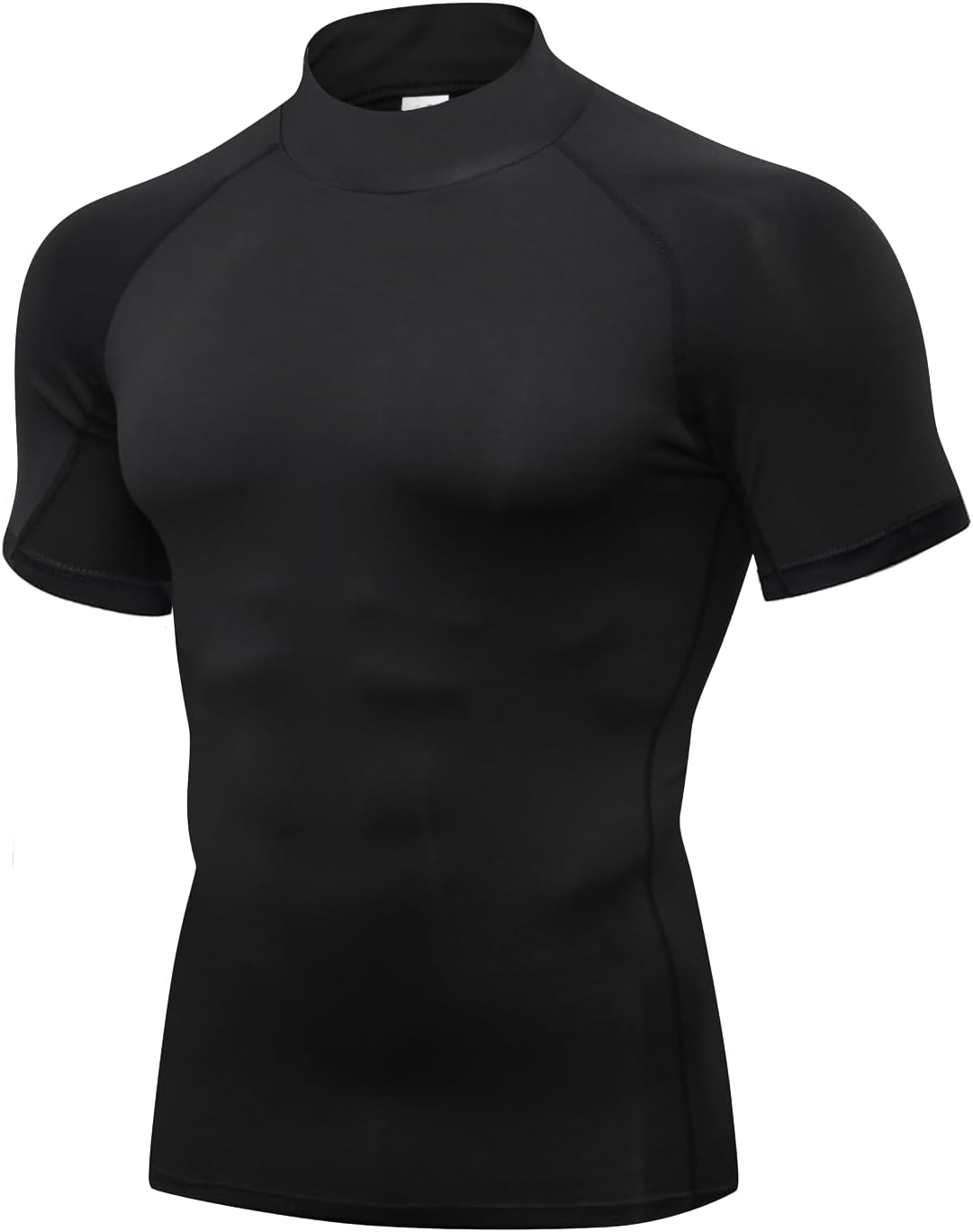 Compression Shirt Men Mock Turtleneck Short Sleeve Athletic Workout T Shirts Quick Dry Sports Undershirt Base Layer Tee Tops