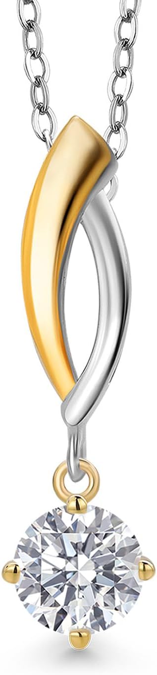 Gem Stone King 925 Silver and 10K Yellow Gold Lab Grown Diamond Pendant Necklace for Women | 0.50 Cttw | Gemstone April Birthstone | Round 5MM | With 18 Inch Silver Chain