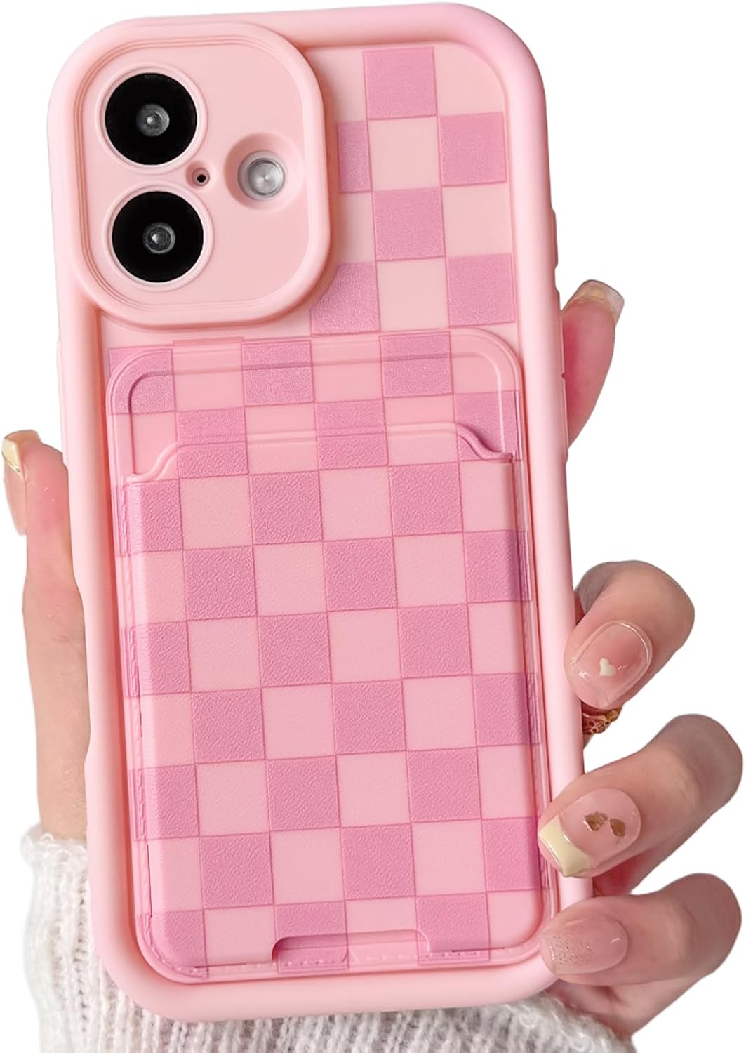 Lovmooful Compatible for iPhone 16 Case Cute Color Checkerboard Lattice Plaid with Card Holder Design for Girls Women Soft TPU More Shockproof Protective Girly for iPhone Case-Pink