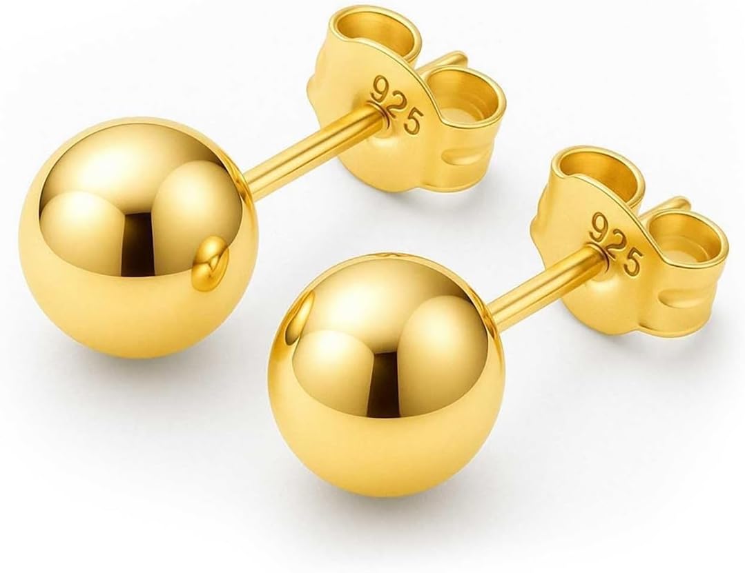 KEZEF Sterling Silver Ball Stud Earrings Hypoallergenic Earrings for Women | Available in Sterling Silver, Rose Gold, or 14K Gold Plated Silver (2mm-10mm)