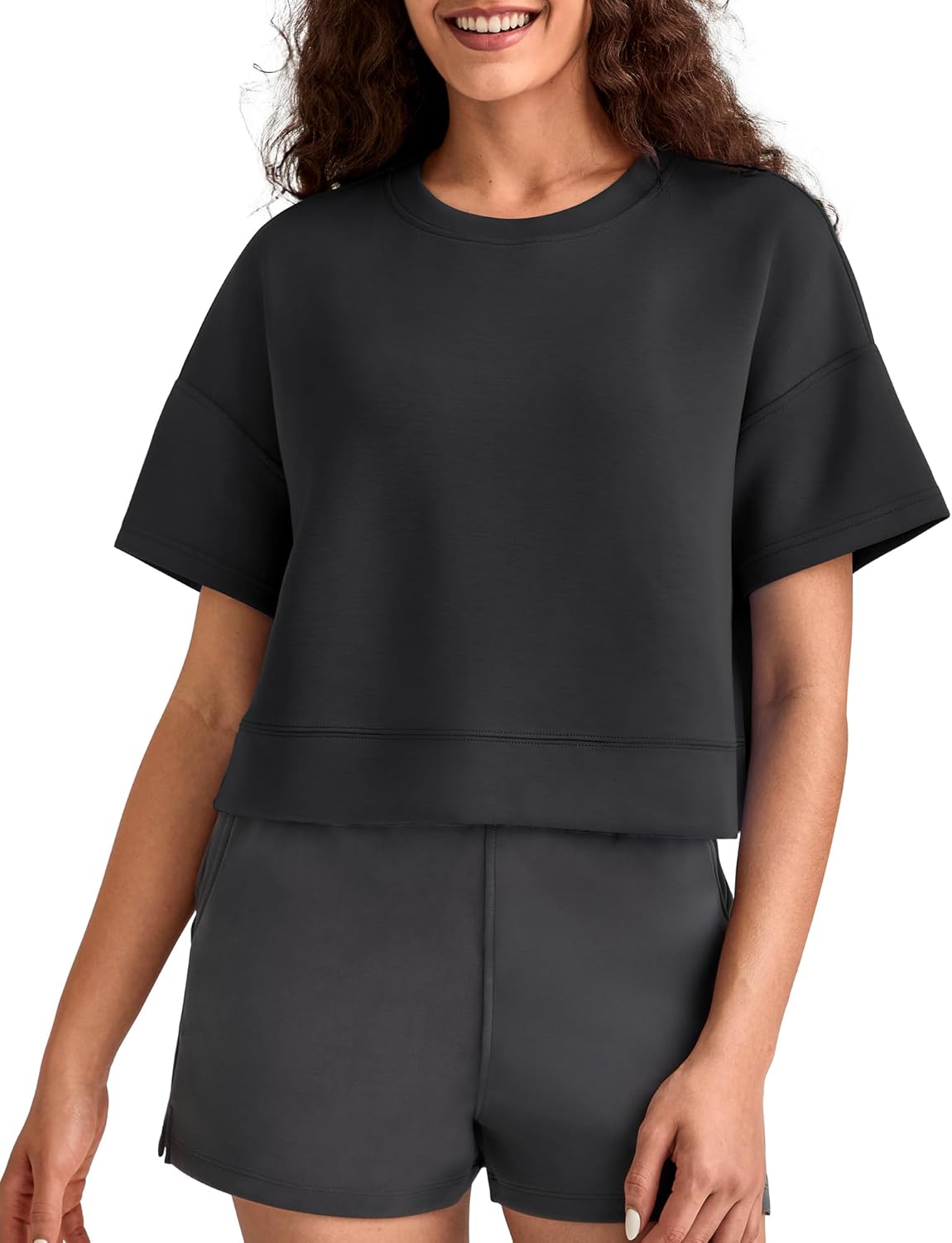 G4Free Smoofit Modal Soft Boxy Tee Shirts for Women Short Sleeve Drop Shoulder Crew Neck Basic Tops Casual Lounge