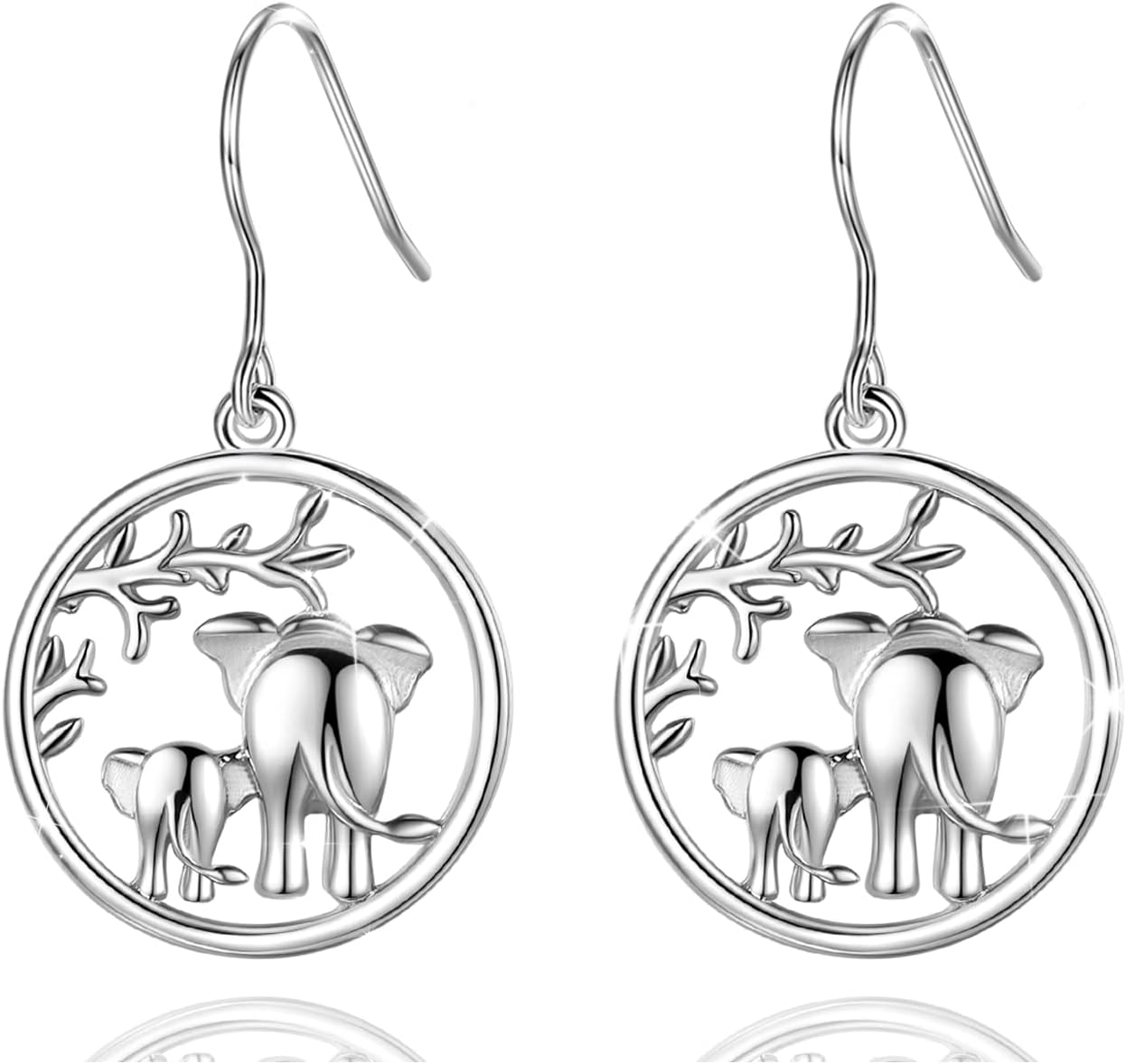 AEONSLOVE Elephant Sterling Silver Earrings, Elephant Jewelry for Women, Mother's Day Gift