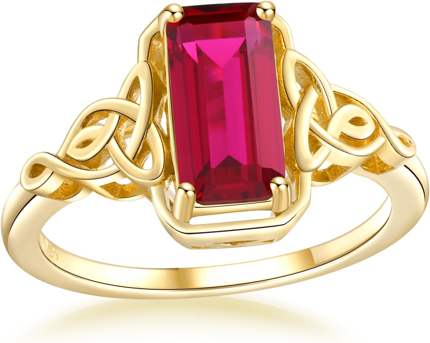 Celtic Knot Ring Sterling Silver 14K Yellow Gold Plated Lucky Trinity Emerald Cut Engagement Rings Amethyst/Peridot/Aquamarine/Ruby/Blue Topaz/Green Emerald/Sapphire Solitaire Signet Ring for Women