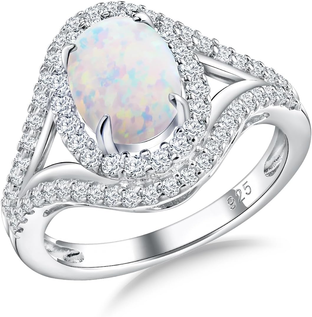 Womens Engagement Ring 925 Sterling Silver Oval Elongated Cushion Cut Sapphire/Ruby/Emerald/Opal Gemstone Anniversary Statement Cocktail Halo Ring Size 6 to 10 (with Gift Box)
