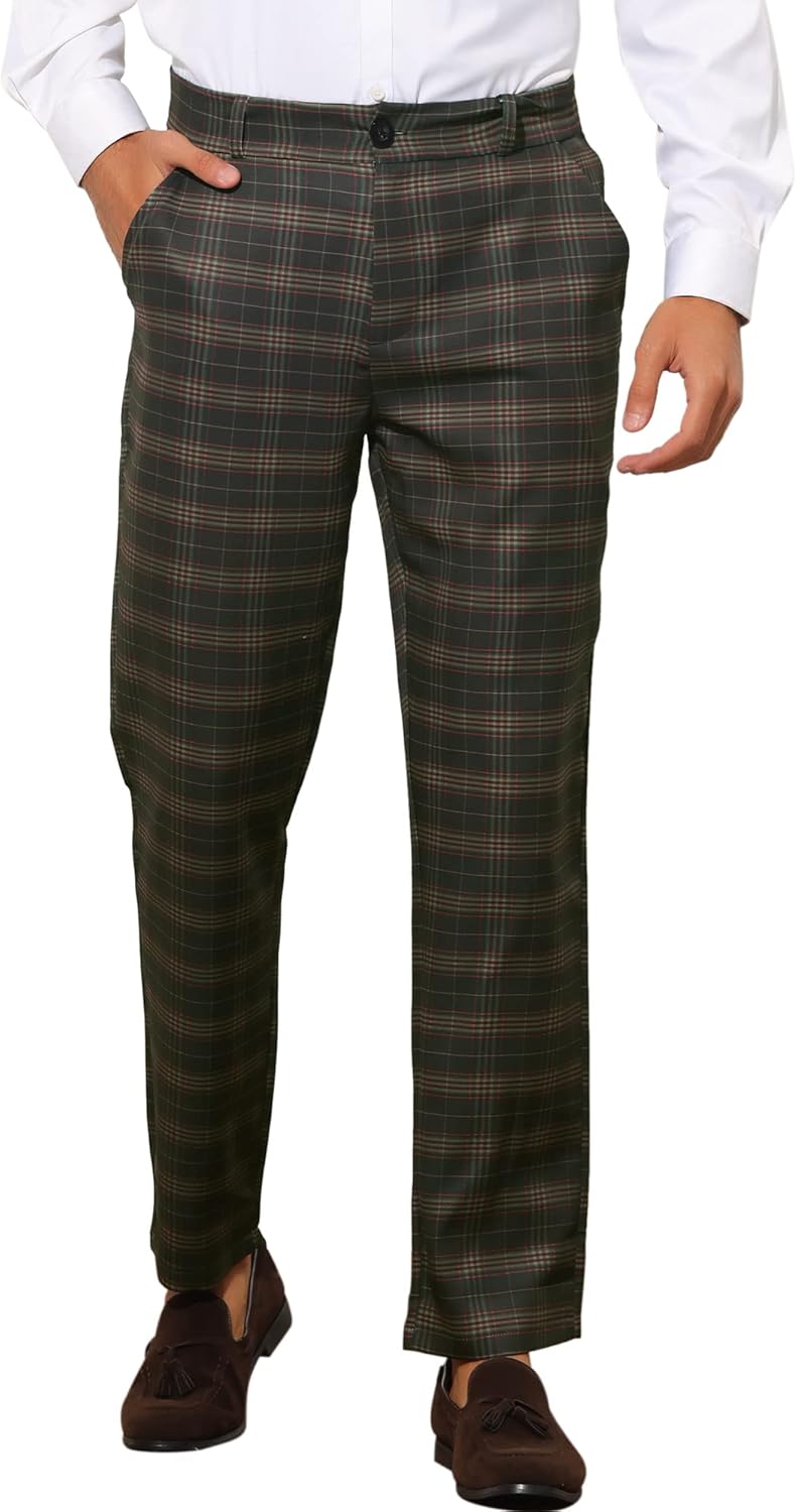 Lars Amadeus Plaid Pants for Men's Straight Fit Casual Checked Pattern Trousers