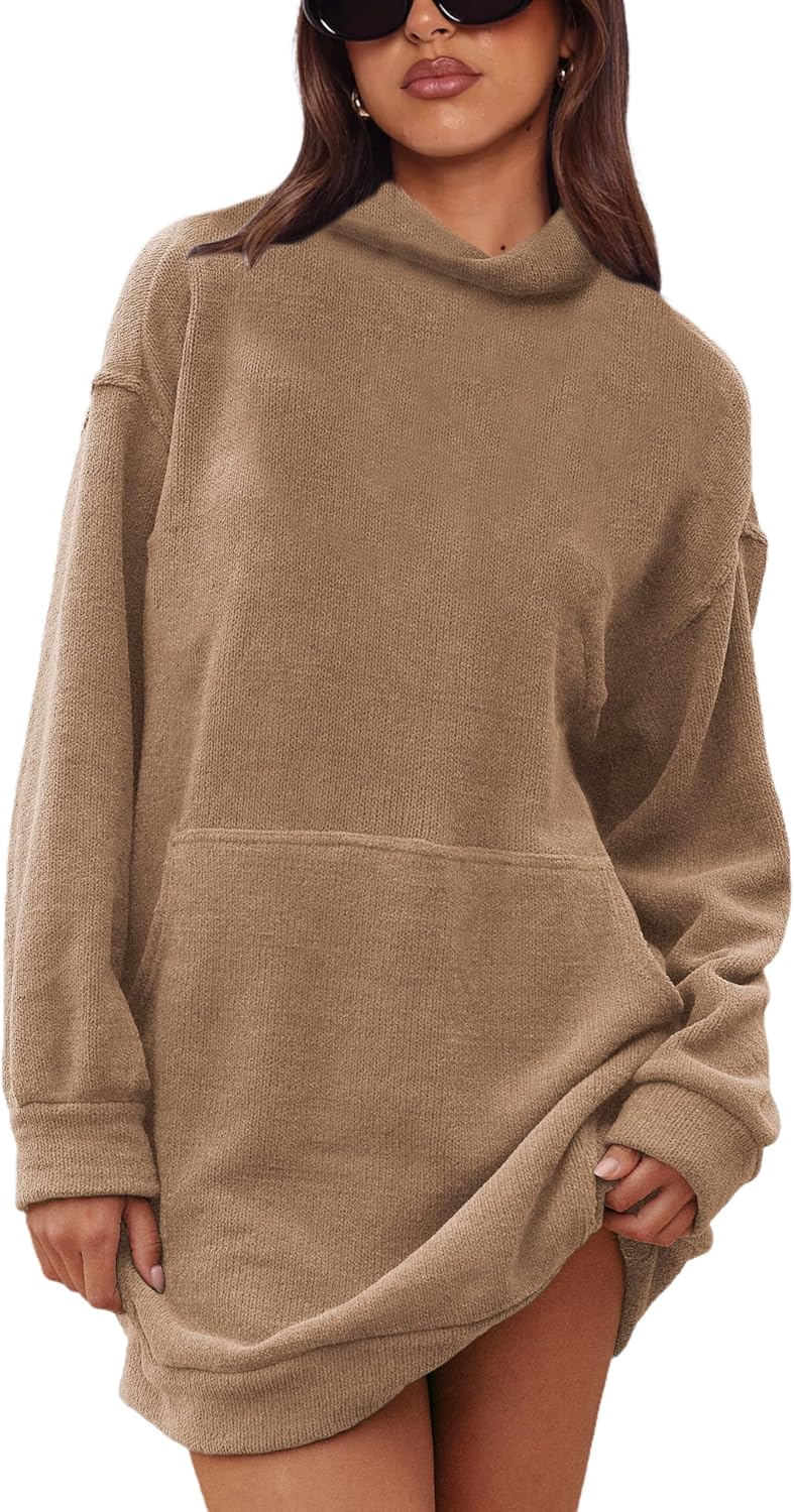 Turtleneck Pullover Sweater for Women 2024 Casual Long Sleeve Chenille Jumper Knit Top with Pockets