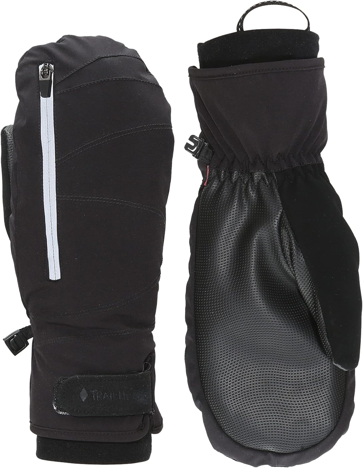 TrailHeads Convertible Winter Mittens for Women – Zip Open Fingerless Mitts with Primaloft Insulation, Recycled Materials & Reflective Trim, Black Mittens for Skiing, Snowboarding & Outdoor Workouts