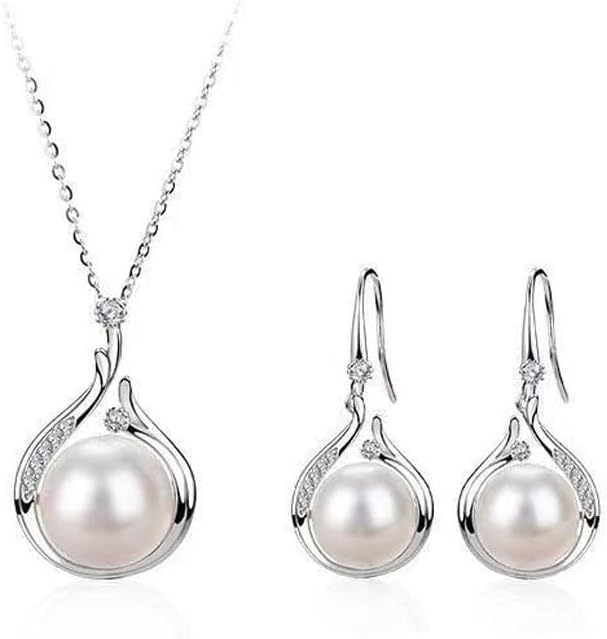 Classic Pearl Jewelry Set for Women Elegant Necklace and Earrings CZ Freshwater Cultured/Simulated Opal Infinity Pendant Perfect as Special Occasion Gift