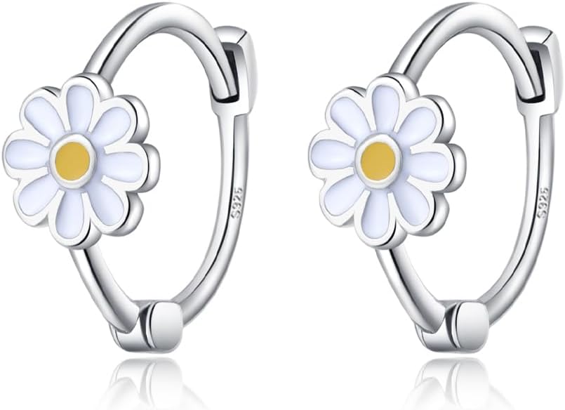 Reffeer Solid 925 Sterling Silver Daisy Flower Hoop Earrings for Women Teen Girls Flower Hoop Earrings Spring Cartilage Helix Earrings