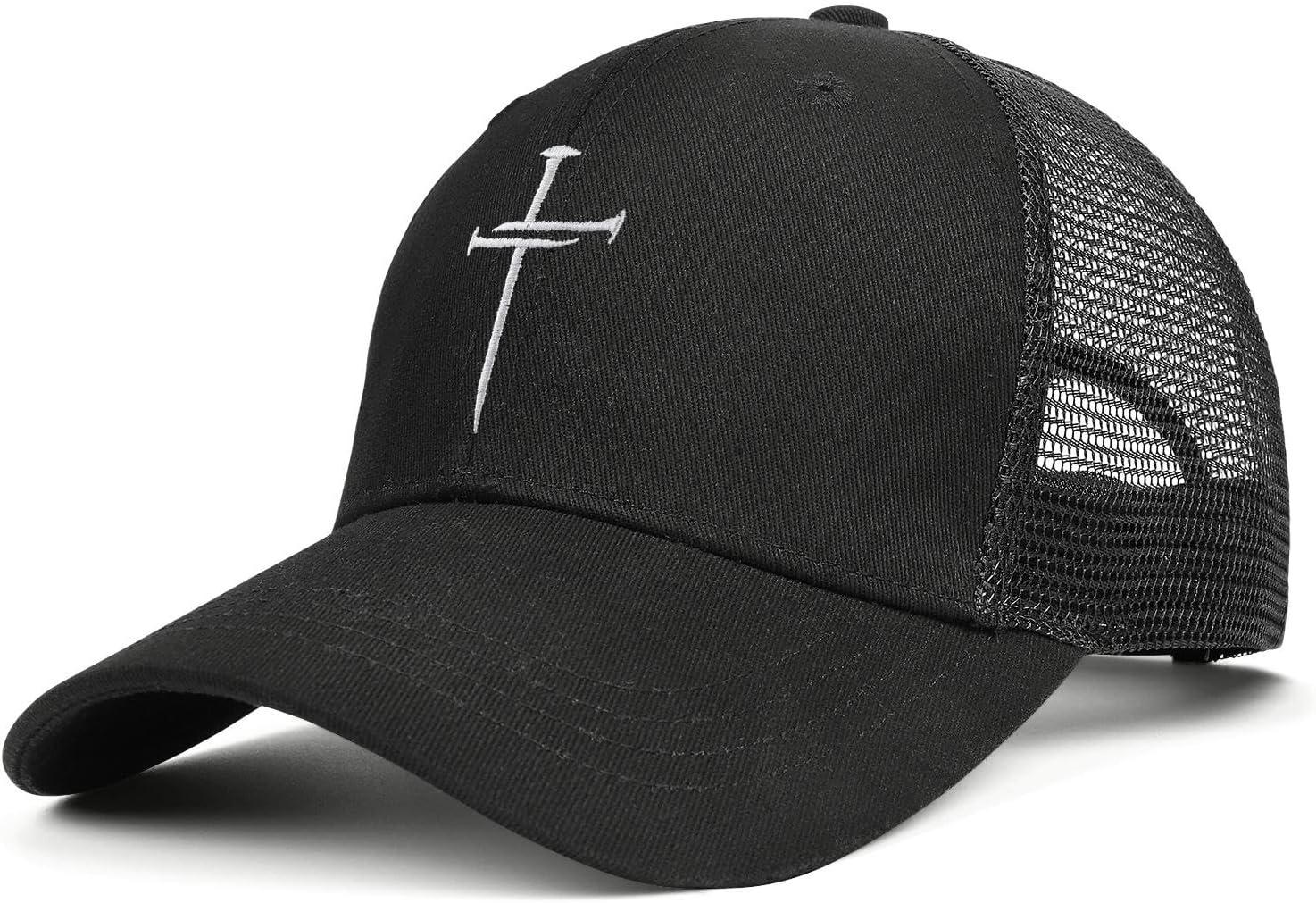 Christian Hats Jesus Cross Embroidered Trucker Hat – Cotton Mesh Cap for Men & Women, Adjustable Snapback, Breathable Design