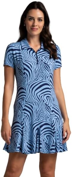 IBKUL Athleisure Wear Sun Protective UPF 50+ Icefil Cooling Cecilia Print Short Sleeve Godet Dress - 69932