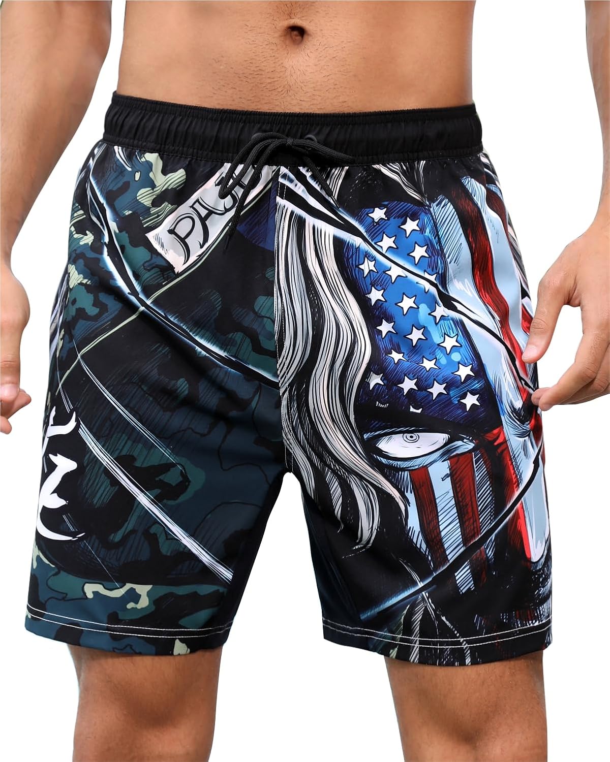 PAJUYE Mens Swim Trunks Beach Shorts - Swimming Shorts with Mesh Liner and Zipper Pocket Quick Dry UPF 50+