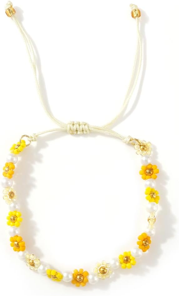 Cute Flower Beaded Pearl Bracelet for Women,Handmade Boho Colorful String Bracelet Spring Summer Jewelry Gift Friendship
