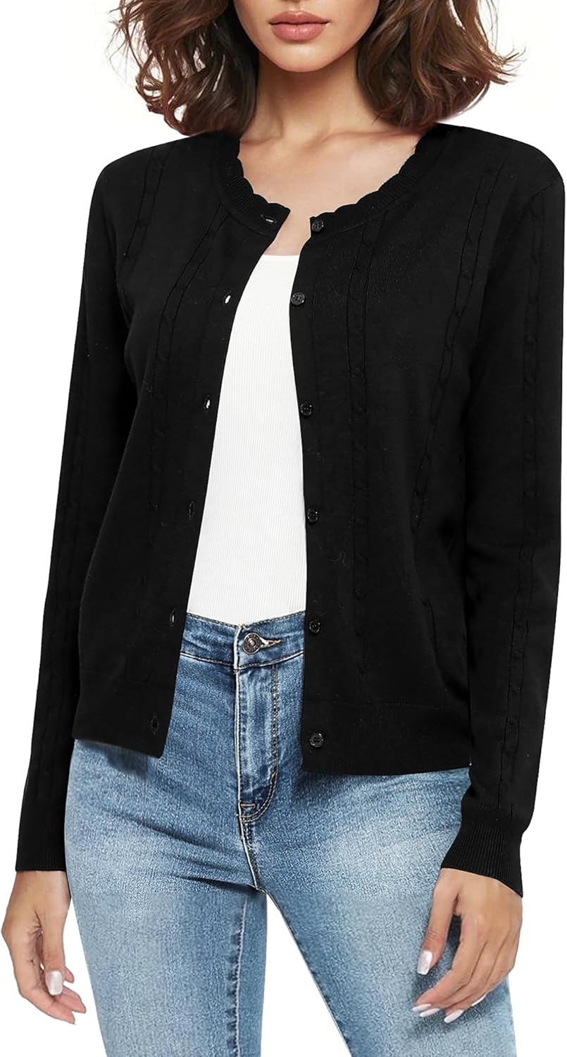 Urban CoCo Women's Crew Neck Button Front Cardigan Sweaters Long Sleeve Open Front Soft Knit Sweater Outfits