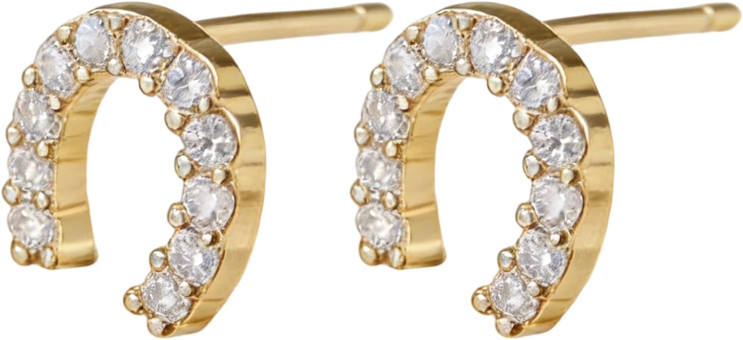 18K Gold Plated Horseshoe Earrings for Women S925 Sterling Silver Hypoallergenic Small CZ Studs, Dainty Horse Shoe Earrings Women with 2.0μm Plating, Lucky Equestrian Jewelry Gifts for Birthday Graduation Sensitive Ears