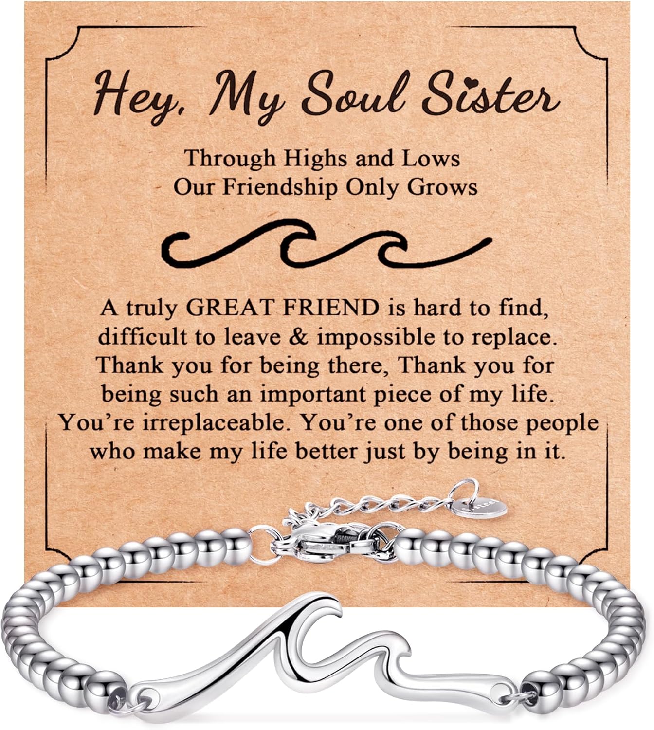 Gift for Friends - Wave Bracelet for Best Friend Bestie Soul Sister,The Waves of Life We've Through Together, Woman Friendship Gifts Idea for Christmas Valentines Day Birthday Gifts For Her