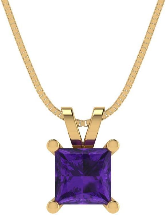 Clara Pucci 14K Yellow Gold Plated Solitaire 18" Box-Chain Necklace - Sterling Silver 2.5ct Princess Cut Amethyst Pendant