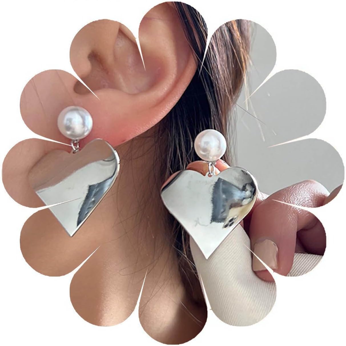 Boho Pearl Earrings Heart Earrings Pearl Stud Earrings Heart Dangle Earrings Jewelry for Women and Teen Gifts
