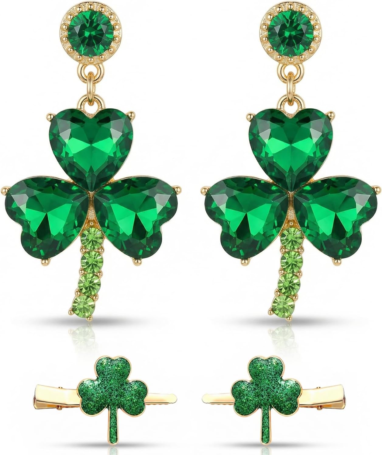 St Patricks Day Accessories for Women Shamrock Earrings Studs and Hair Clips Set St Patricks Day Earrings Irish Lucky Green Heart Four Leaf Clover Earring Decorations Good Luck Jewelry Gift