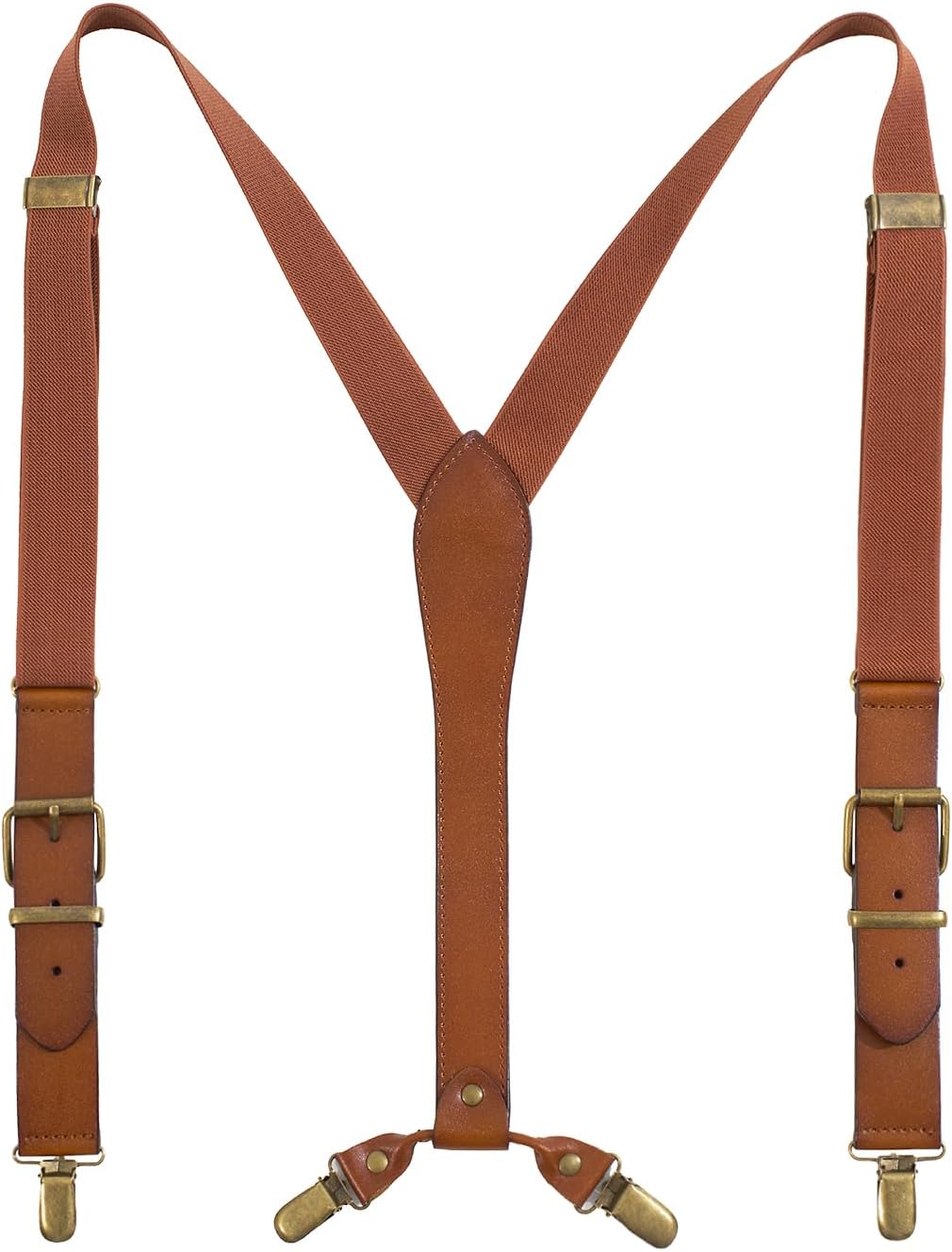 UPSONG Leather Suspenders for Men Adjustable Braces with 4 Strong Clips Perfect For Both Casual&Formal