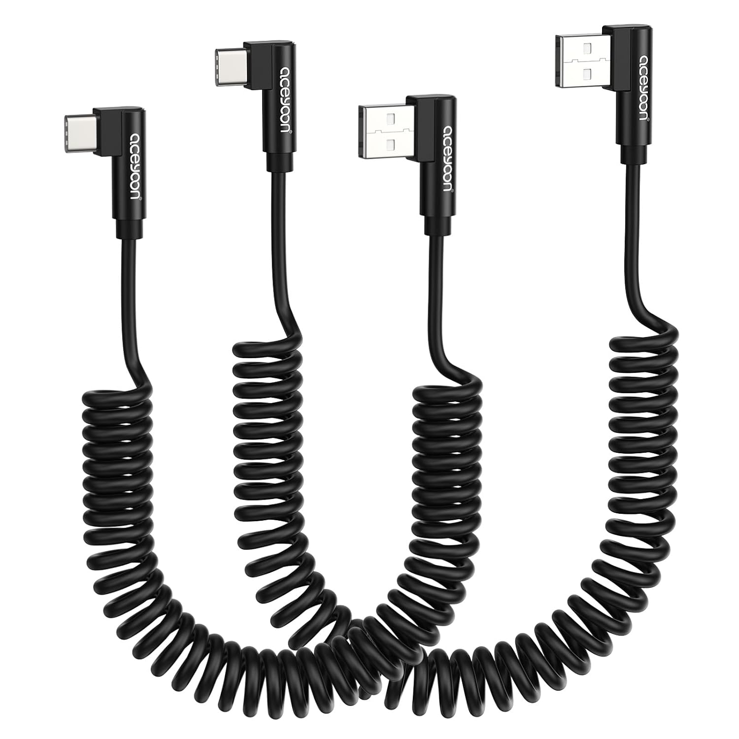 aceyoon 2 Pack Coiled USB C Cable, 90 Degree USB A to USB C Cable 60W USB Type C Charging Cord for CarPlay Compatible with iPhone 16 15 Plus/Pro/Pro Max, Samsung Galaxy S25 S24 S23 (2.5FT+ 4FT)