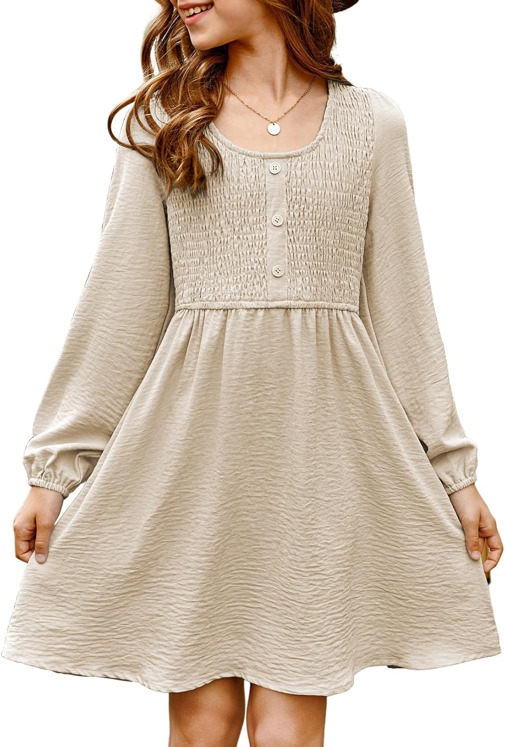 blibean Tween Girls Smocked Dresses Semi Formal Outfits with Pockets Size 6-15 Years